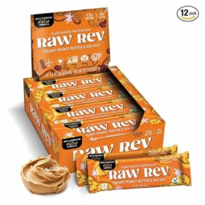 Raw Rev Vegan Protein Bars- Creamy Peanut Butter & Sea Salt, 12 bars, Non-GMO, Plastic-Neutral,...
