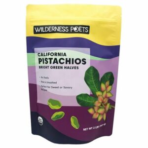 Wilderness Poets, Organic Pistachios – Bright Green Pistachio Nut Halves, No Salt, Grown in California...