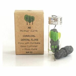 Vegan Biodegradable Bamboo Charcoal Dental Floss with Refillable Glass Container | Free Refill | Natural...