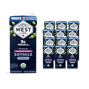 West Life Organic Soy Milk, Unsweetened Plain, Low Sugar, 9g of Protein, Vegan Dairy Alternative,...